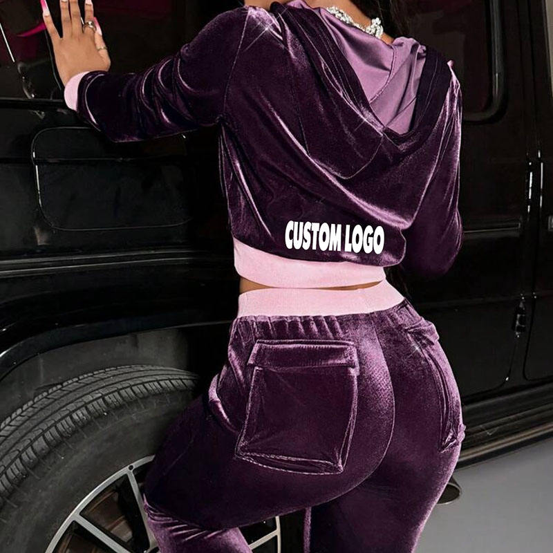 2026 Custom Color Women Clothing High Quality Embroidery Logo Casual Velvet Y2K Jogging Suit 2 Piece Set Velour Women Tracksuit