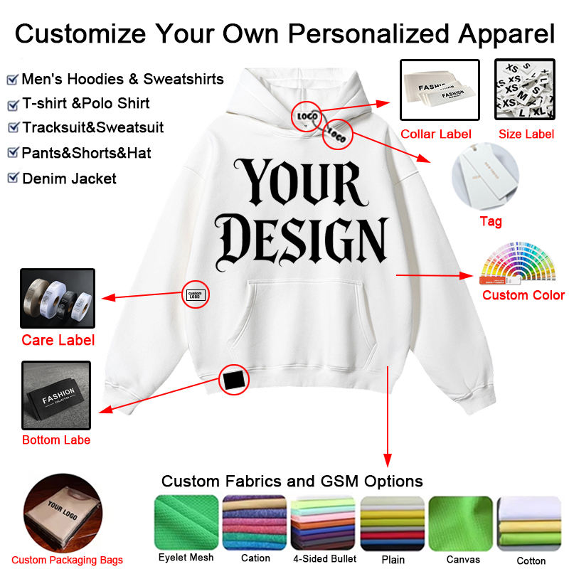 Felpa con Cappuccio da Uomo 2026 Personalizzata con Ricamo, Vestibilità Ampia, Lavaggio Acido, Pesante, Tinta Unita, Effetto Distressed, Stampa Vintage