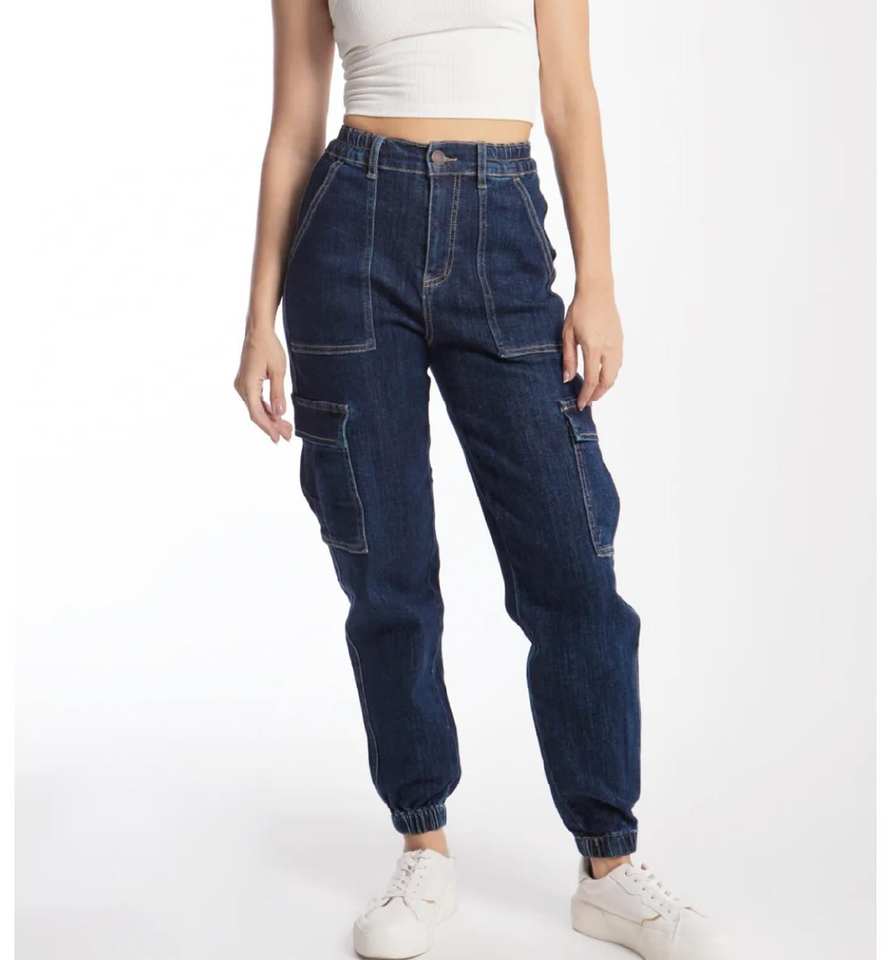 Jeans in denim da donna 2026 personalizzati di alta qualità, stile vintage, con vita elastica, lavaggio blu, inserti a pannelli, modello cargo a gamba dritta, ispirati ad America/Messico