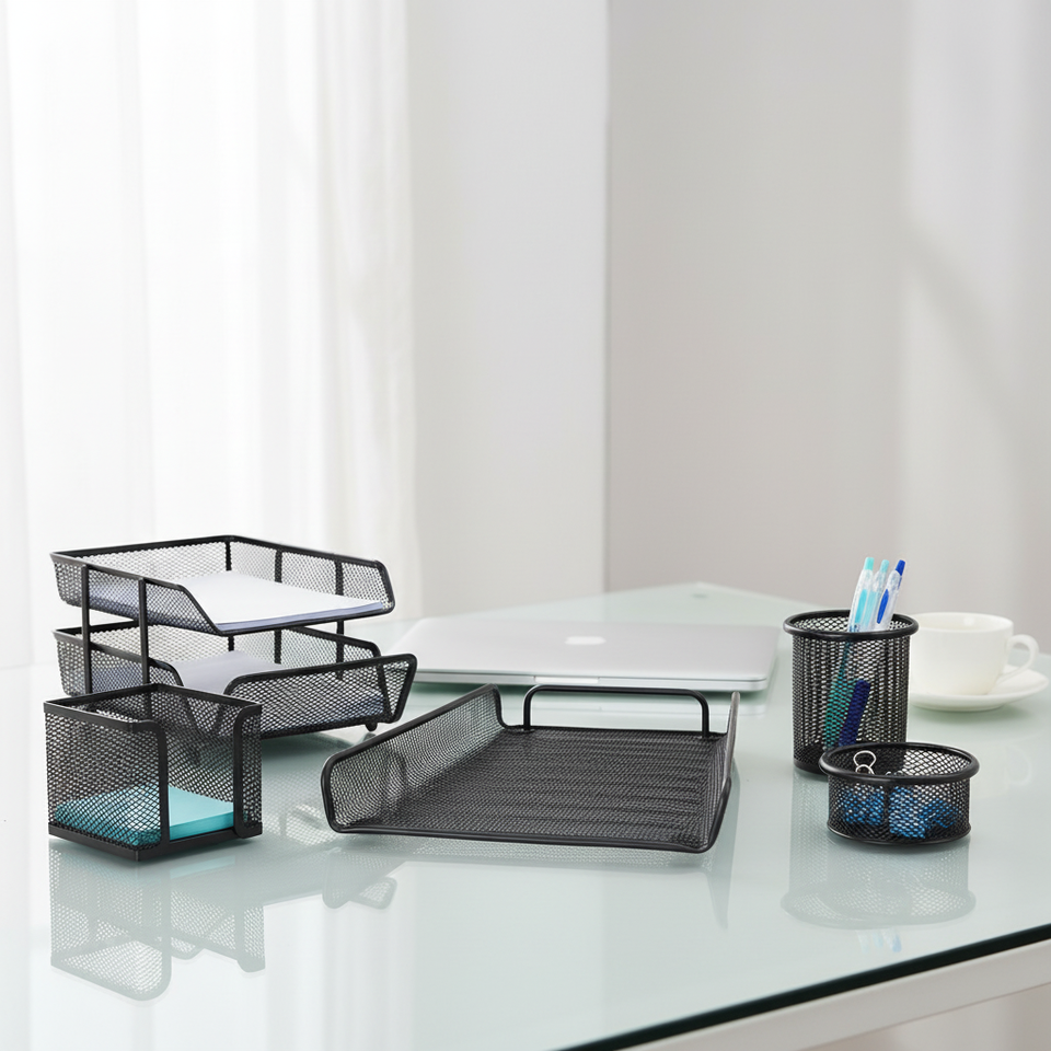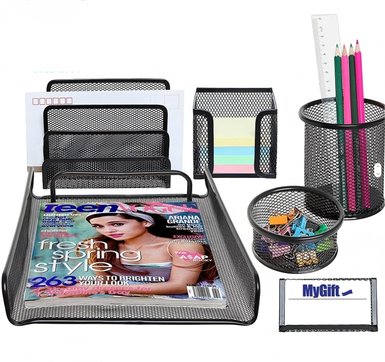 Nome del prodotto:Set di organizer da scrivania in rete metallica per scuola e ufficio