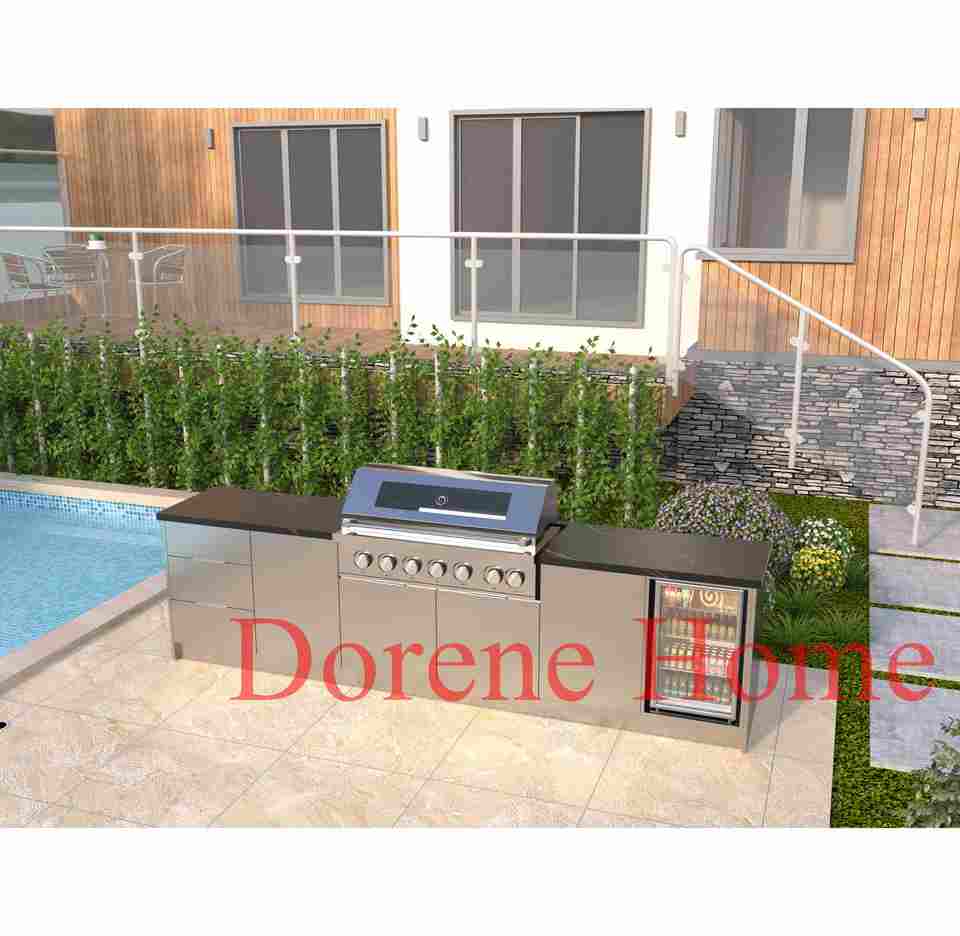 2026 Dorene elegante per tutte le stagioni all'aperto armadio da cucina Grill Station con pensili impermeabili e lavello in acciaio inox