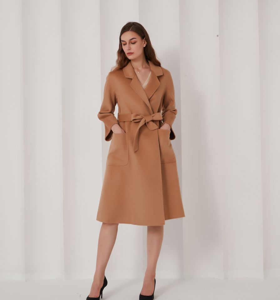 2026 Elegant Luxury Handmade Custom Long 100% Pure Wool Coat for Women Female Ladies Genuine Sheep Cashmere Fur for Winter