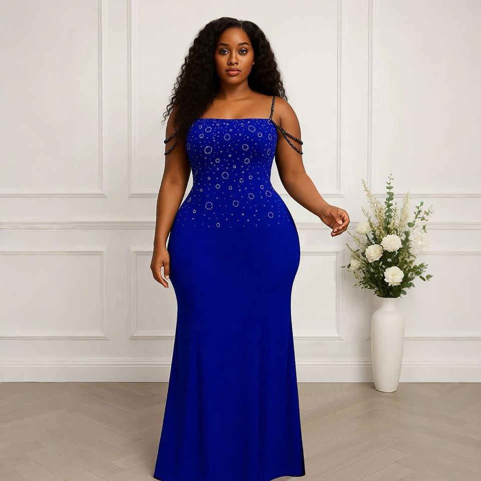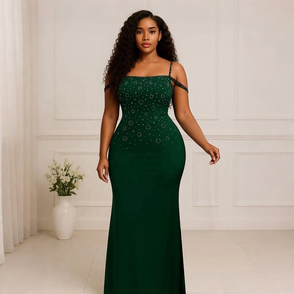 Abito da Sera 2026 per Donna, Vestito Lungo Monocolore Sexy con Spalline e Diamanti, Abito Maxi Snellente alla Moda per Cena Elegante