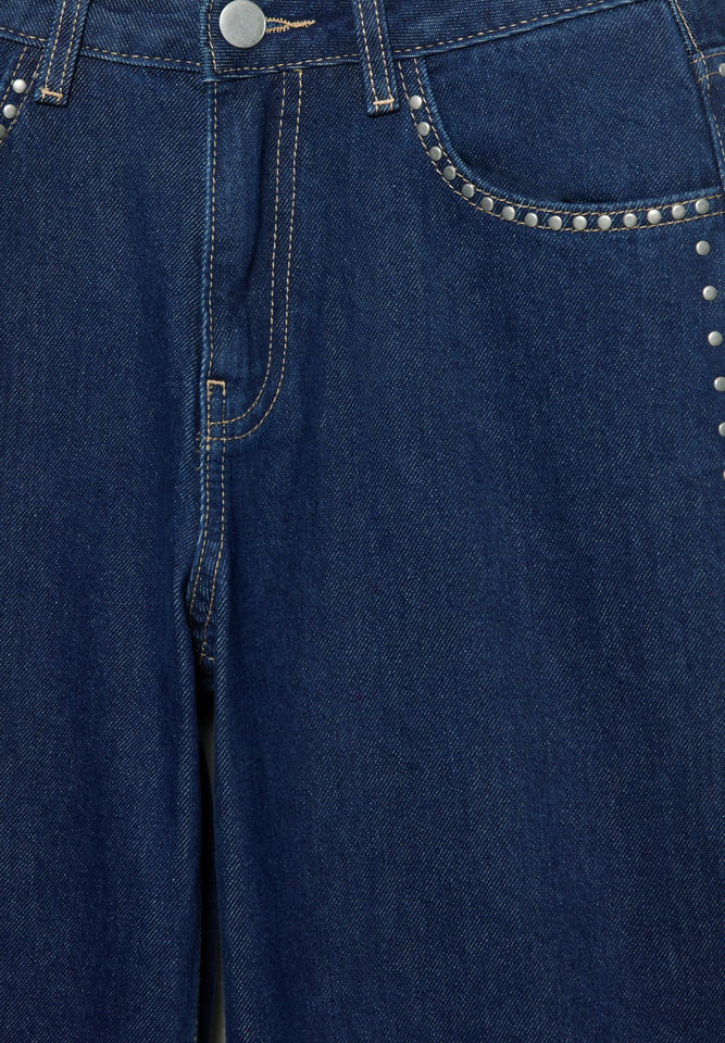 2026 Fashion Low Waist Loose Casual Women's Jeans with Side Studs Embellished Dark Blue Denim Wide Leg Washable