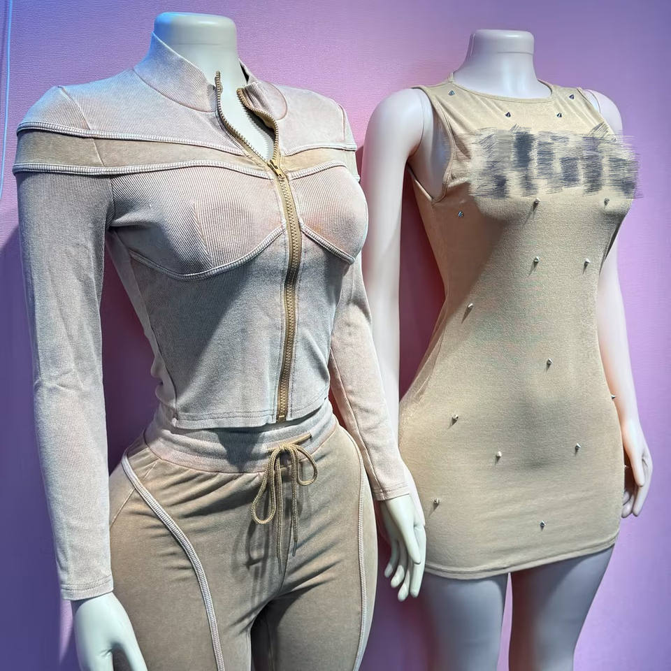 Completo da donna a costine alla moda 2026: Top corto a maniche lunghe con cerniera e patchwork + Pantaloni - Abbigliamento streetwear femminile