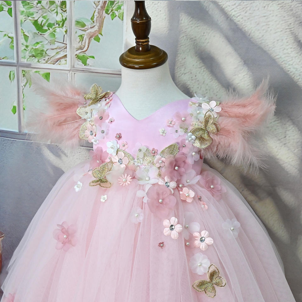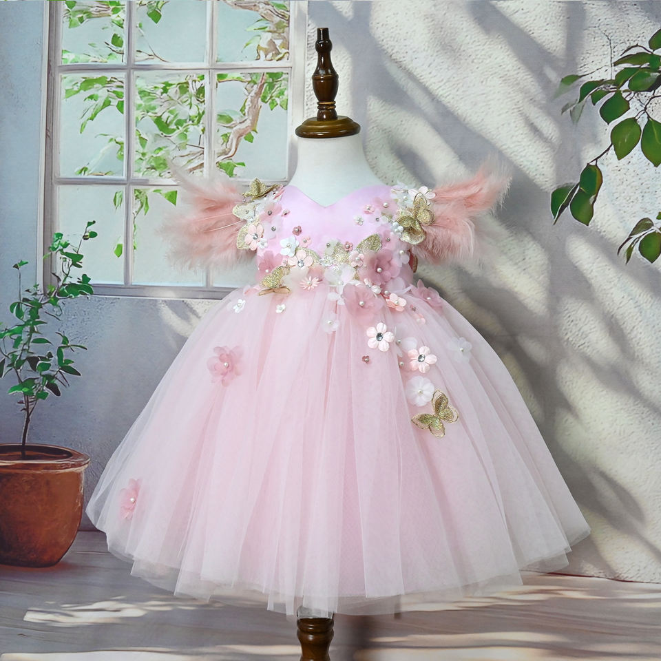 Abiti per Bambine 2026 Stile Piuma per Feste e Occasioni Speciali, Alta Qualità con Applicazioni Floreali per Neonati, Bambini e Ragazze