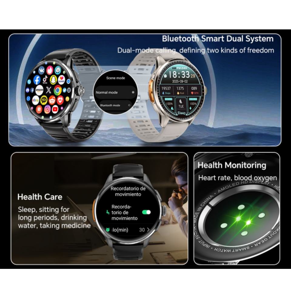 Activity Tracker, Alarm Clock, Answer Call, Call Reminder, Calorie Tracker, Dial Call, Distance Tracker, EMAIL, Fitness Tracker, Heart Rate Tracker, Message Reminder, Passometer, Pedometer, Positioning, Push Message, Remote Control, Sleep Tracker, Voice Call, WORLD TIME, Audio Recording, Gps Navigation, SOS button, Accelerometer, Altitude Meter, AI voice assistant, chronograph, COMPASS, Countdown, Multisport Tracker, Speed Measurement, Social Media Notificationsfunction