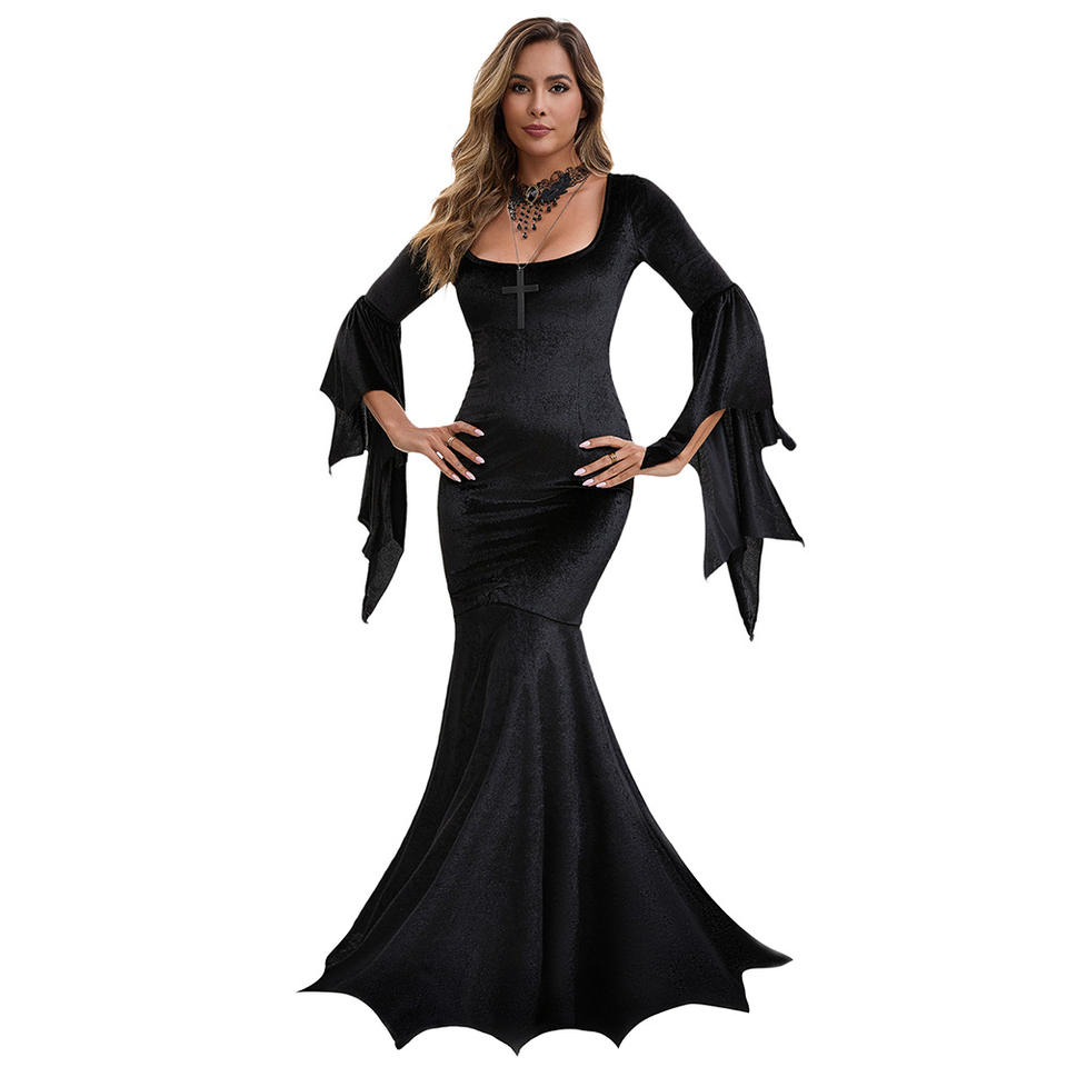 Costume da Spettacolo Halloween 2026 Ispirato a TV e Film in Stile Gotico con Abito Lungo da Sposa Oscura, Strega o Vampira