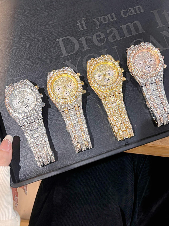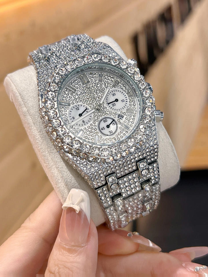 Orologio da Polso Hip Hop Bling Diamantato da Uomo 2026, Lusso Argento Iced Out, al Quarzo, Impermeabile, alla Moda - Offerta Calda