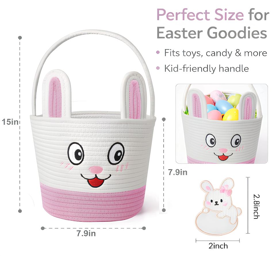 2026 Hot Sale Cartoon Little Rabbit Basket with Handle Name Tag Convenient Easter Basket for Girl Boy