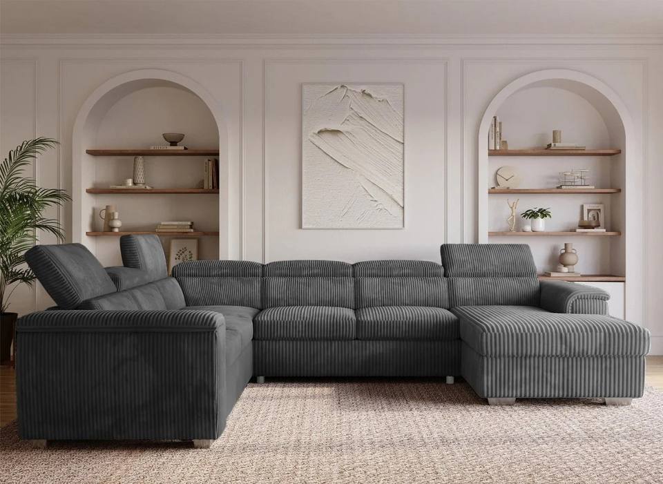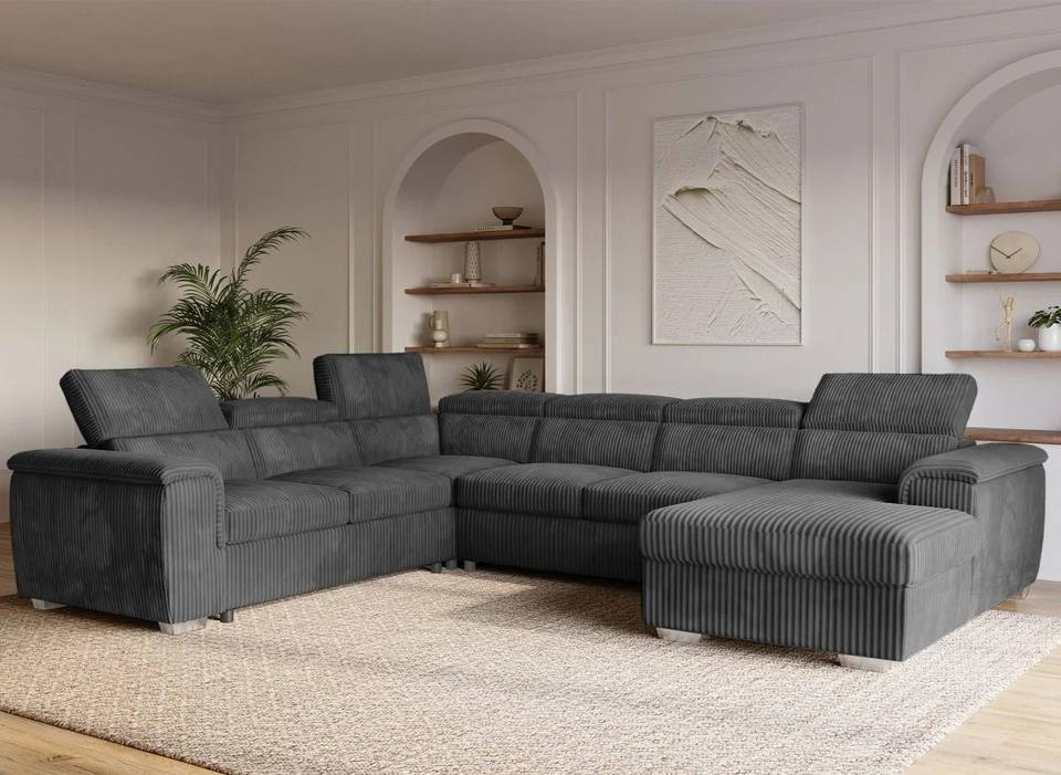 Divano letto estraibile a U del produttore 2026 con contenitore e poggiatesta convertibile in velluto a coste spesso