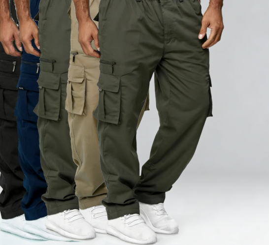 2026 NEW KJ Men's XL Casual Cargo Pants Multi-Pocket Straight Leg Colored Chino Anti-Wrinkle Mid Baggy Tactical Fitness Pants