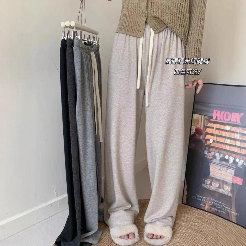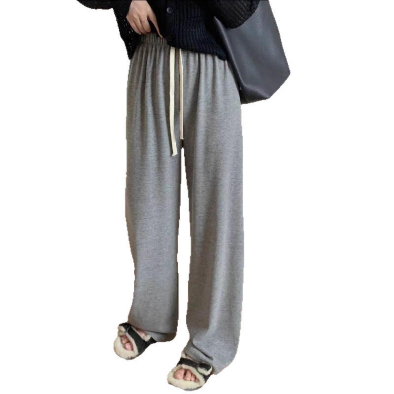 2026 nuovi pantaloni KJ primavera estate donna pantaloni Casual in vita tinta unita elasticizzati pantaloni larghi di seta donna pantaloni lunghi a gamba larga