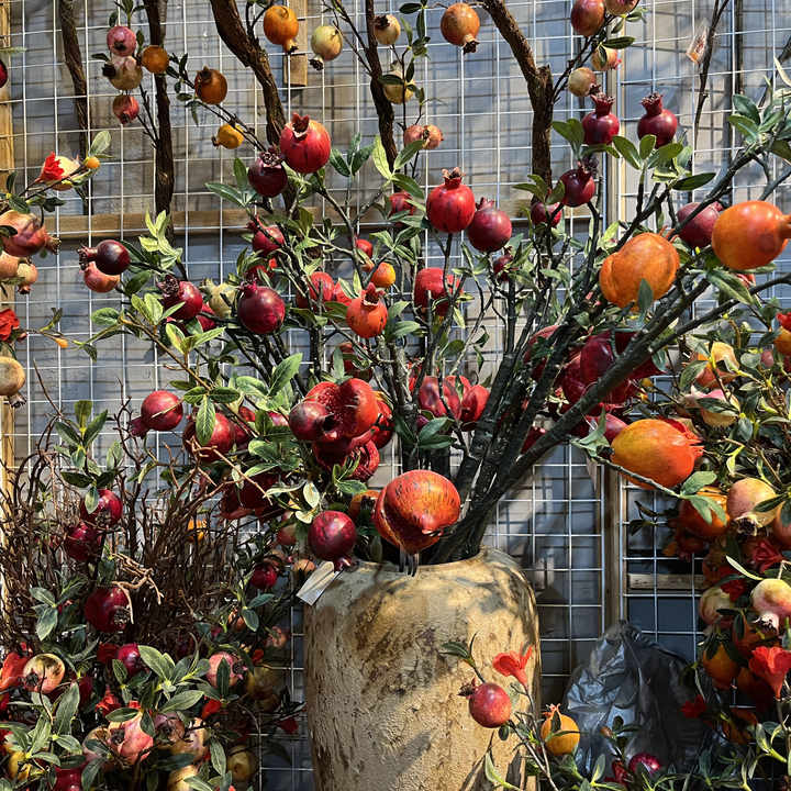 Novità 2026: Melograno Artificiale Irregolare a 5 Teste con Foglie, Melograno Finto Spezzato per Composizioni Floreali Nuziali