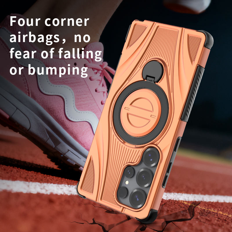 2026 New-Arrival Heavy-Duty Strong Armor Shockproof Phone Case with Rotating Wireless Charging Ring for Samsung S25 Edge Ultra