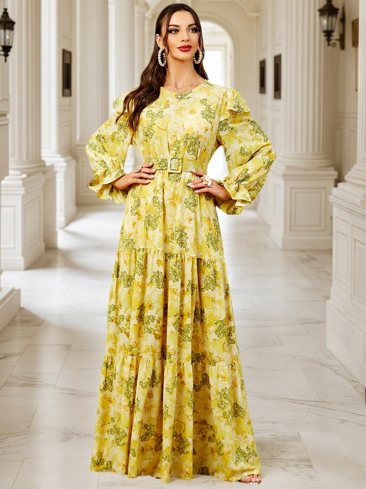 2026 nuovo arrivo Medio Oriente abbigliamento musulmano Casual stampa floreale Abaya donna abito musulmano femminile abbigliamento islamico