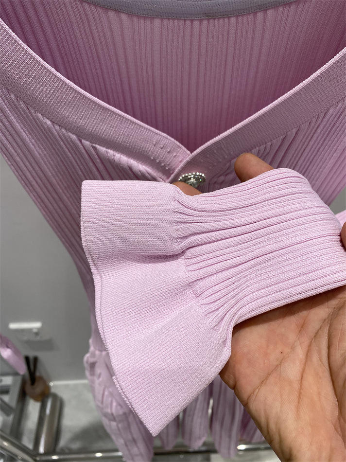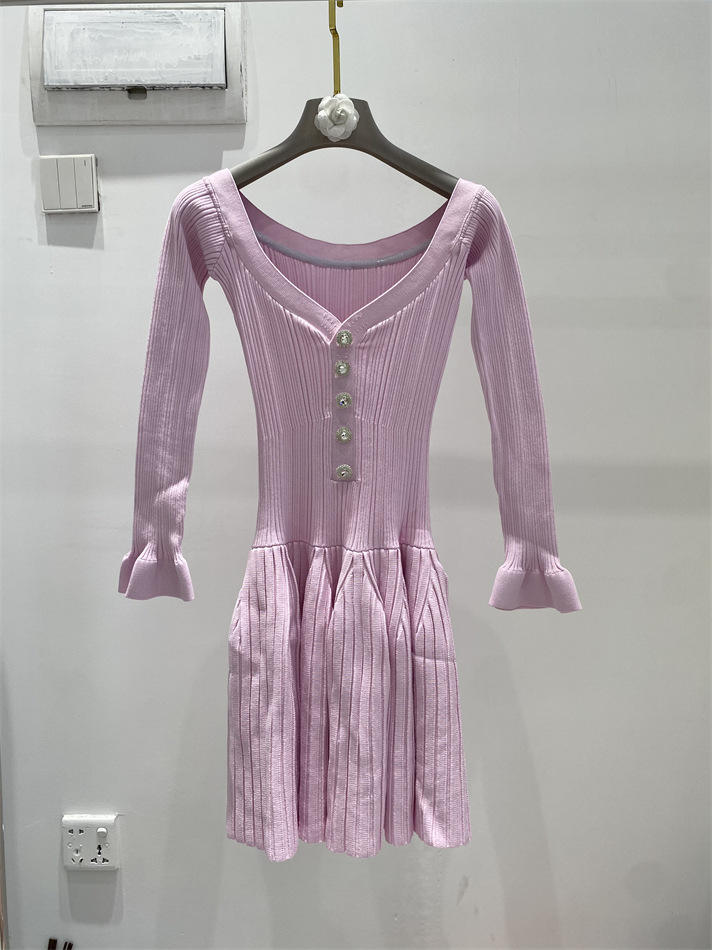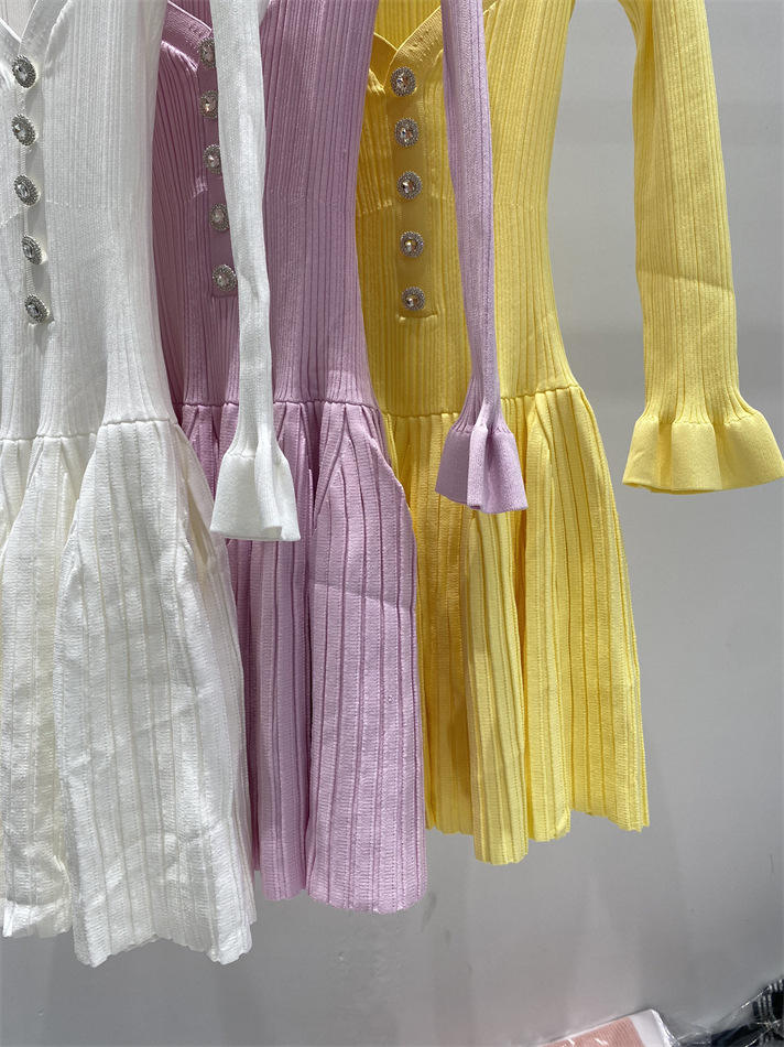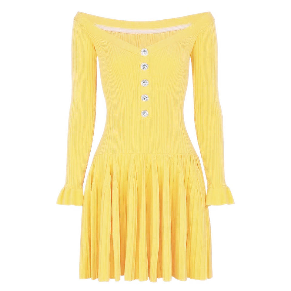 Nuovo Arrivo 2026: Abito Autunnale con Spalle Scoperte, Bottoni in Strass, Volant, Maniche Lunghe, Vestito Mini Aderente e Svasato in Maglia per Donna