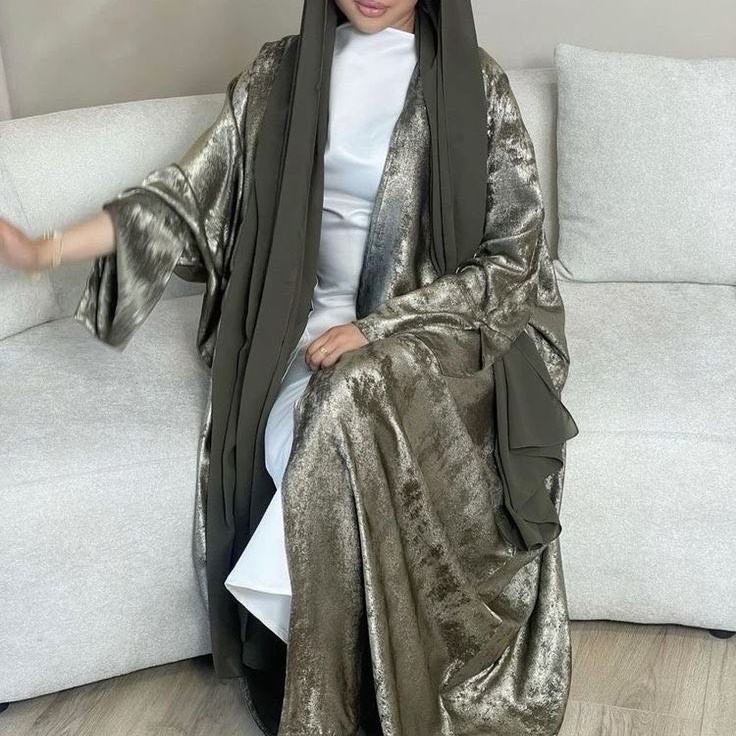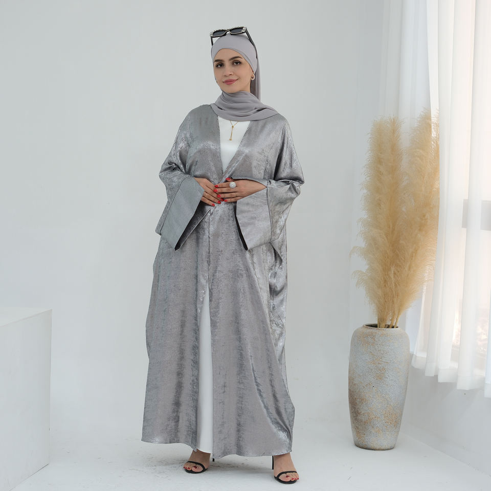 Nuovo Cardigan Abaya 2026 in Poliestere Lucido, Abito Modesto per Donne Musulmane, Abaya Aperta di Dubai, Abbigliamento Islamico alla Moda