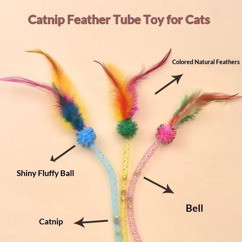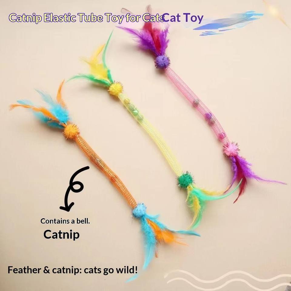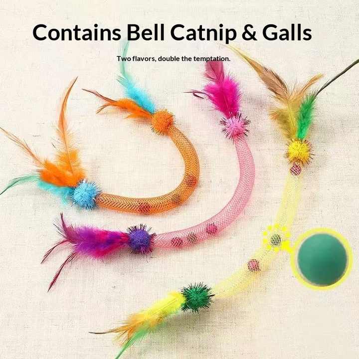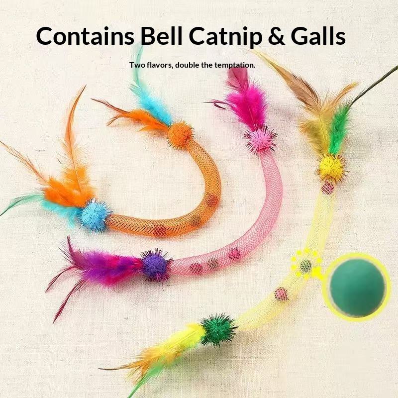 Nuovo Giocattolo per Gatti 2026: Tubo a Rete Interattivo con Piuma e Campanello, Giocattolo da Mordere Resistente per la Dentizione, Sicuro per i Denti, Colorato e Divertente per Gatti