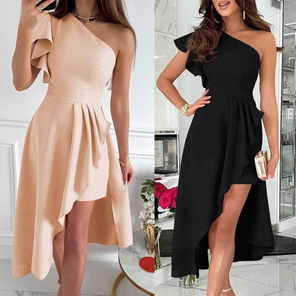 Nuovo Abito da Sera Corto Monospalla Plissettato per Damigella d'Onore, Modello 2026, Ideale per Cerimonie e Balli