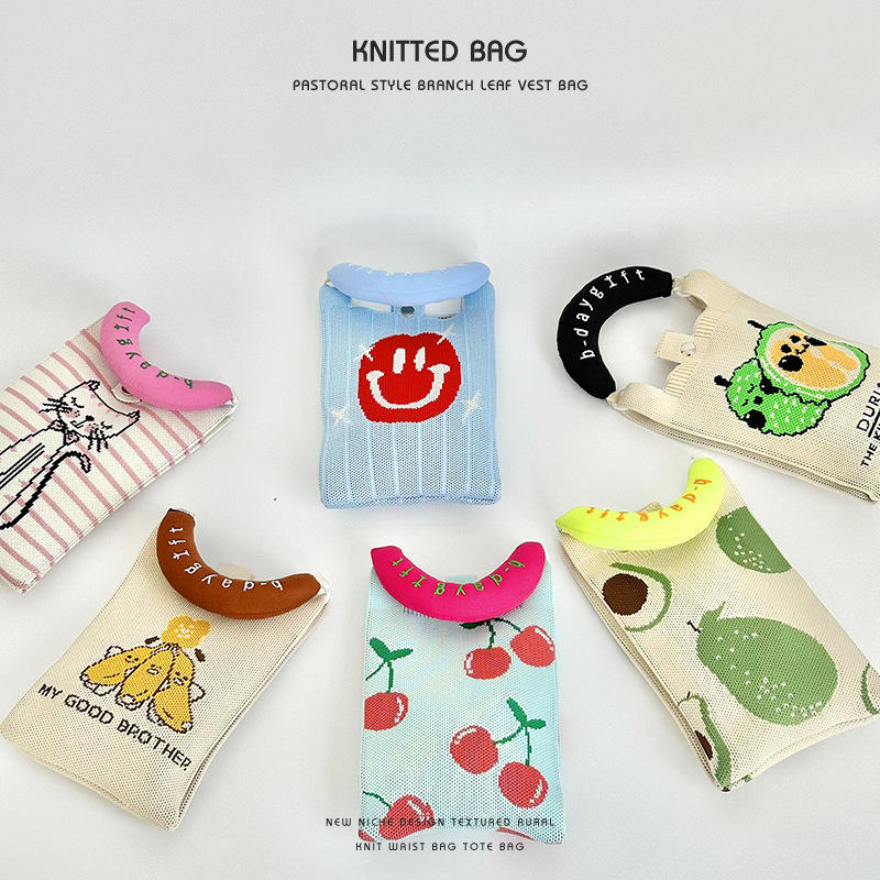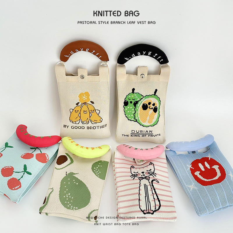 Nuova Borsa a Tracolla in Maglia con Design Cartoon Semplice e Divertente 2026, Borsetta alla Moda di Piccole Dimensioni per Telefono Cellulare, Vendita all'Ingrosso per Donne