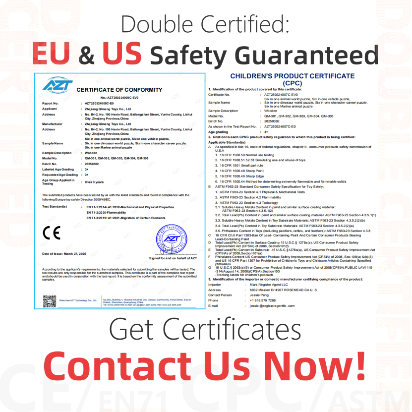 CE, CPC, EN71, ASTM, ISO 9001, Certificazione Personalizzata