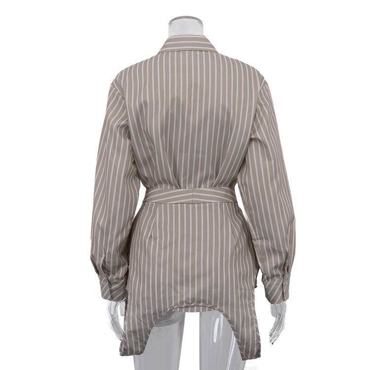 Nuovo Design 2026: Set 2 Pezzi Estivo Casual da Donna con Corsetto a Righe Stampato e Camicia a Maniche Lunghe