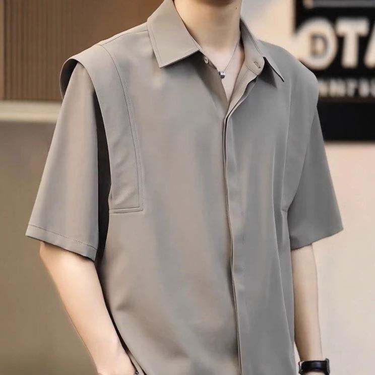 Nuova Camicia Estiva 2026 in Seta Ghiaccio Effetto Asciutto a Maniche Corte da Uomo, Versione Coreana Tinta Unita, Camicia da Stirare