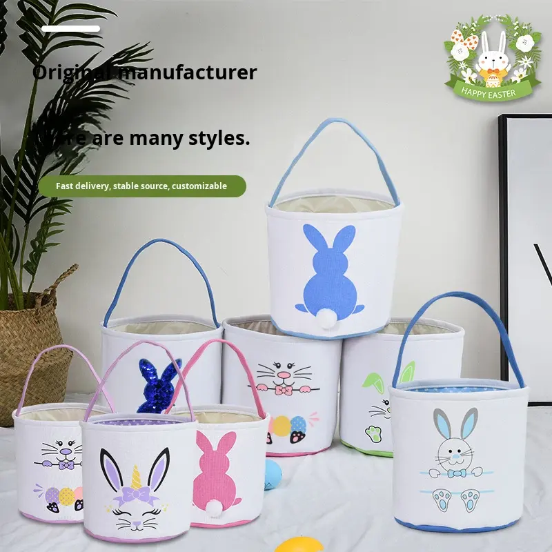 2026 New Easter Basket Egg Decorations Plush Bunny Tail Rabbit Storage Handheld Bucket Cloth Material Minimalist Style Shape