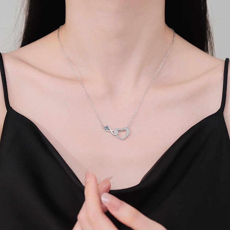 2026 New Hot-Selling Gold Silver Infinite Love Necklace With Zircon Copper Classic Infinity Love Knot Heart Necklace for Girl