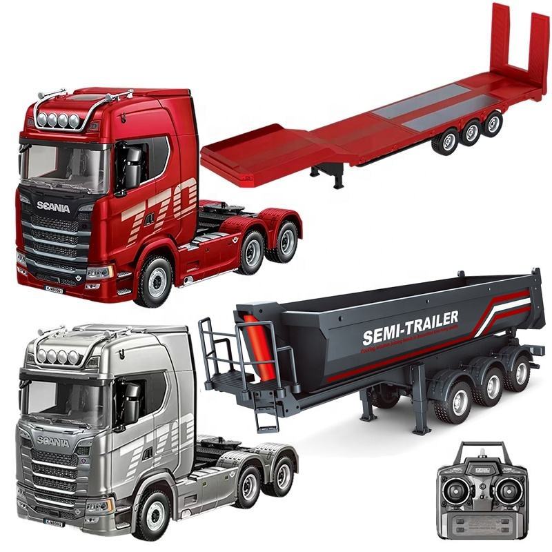 Modello di Auto RC con Semirimorchio Ribaltabile, Telecomando 2.4G, Suoni e Luci