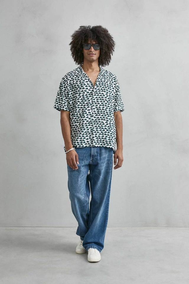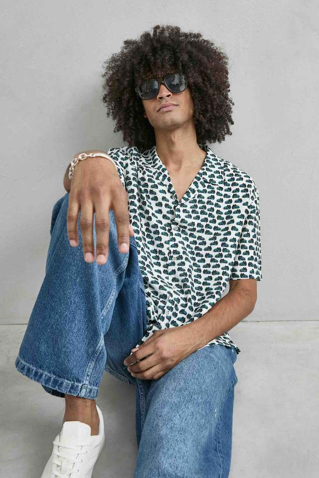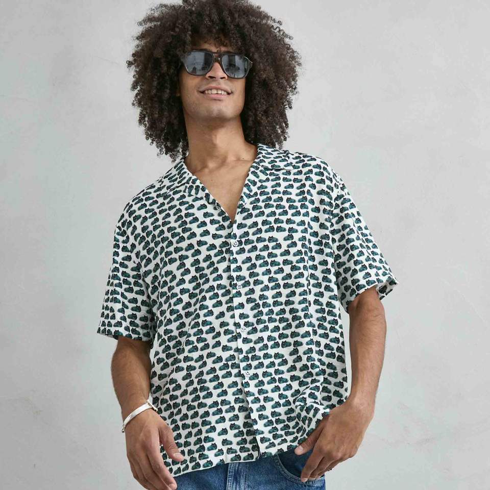 Nuova Camicia Estiva da Uomo 2026 con Scollo a V, Maniche Corte, Bottoni, in Twill 100% Acrilico Antipiega, Stampa Animalier, Casual per Vacanze e Uso Quotidiano