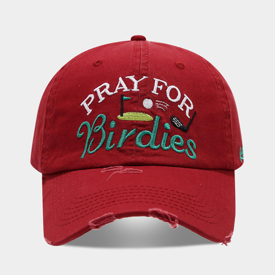 Nuovo Cappellino da Baseball 2026 con Ricamo 'Pray for Birdies', Bordo Sfrangiato e Strappato, Stile Vintage Lavato, Morbido e Casual