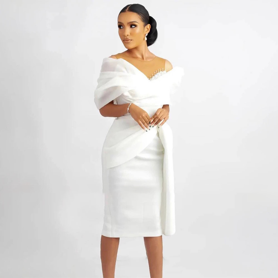 Nuovi Abiti da Sposa Corti 2026, Modello MW658, Senza Spalline, Bianchi, Stile Tubino, Lunghezza al Ginocchio