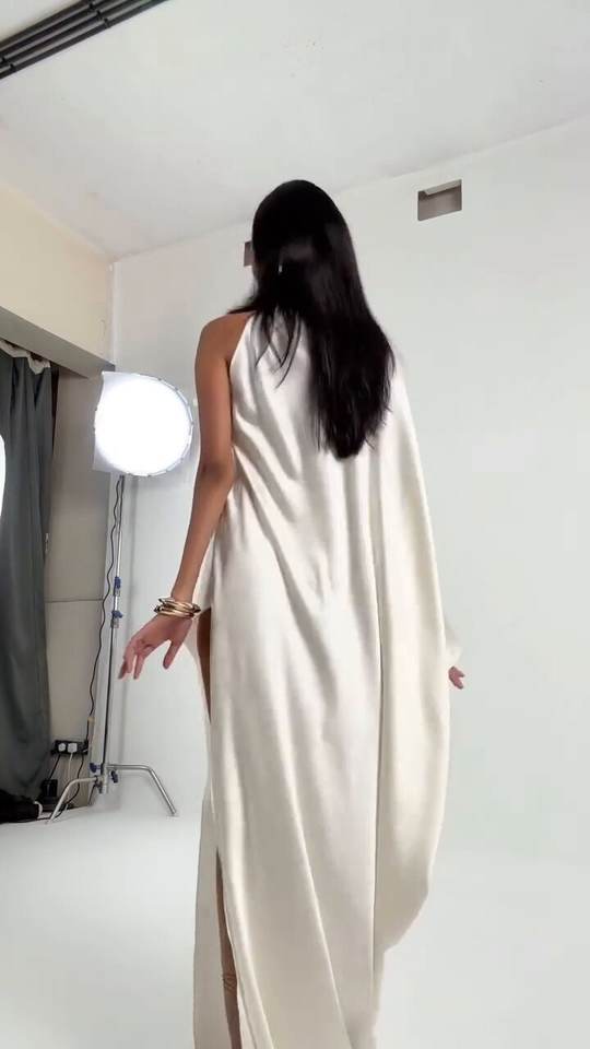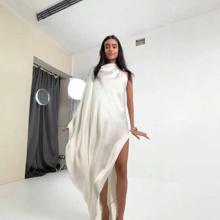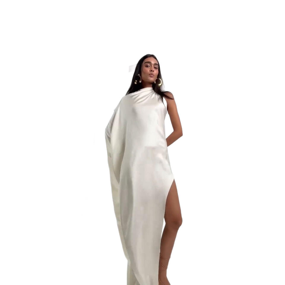 Nuovo Stile 2026: Abito Lungo Bianco Europeo e Americano con Spacco Alto, Elegante Vestito da Sera per Donna, Design Minimalista