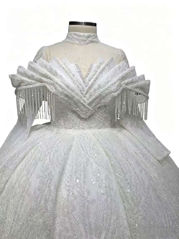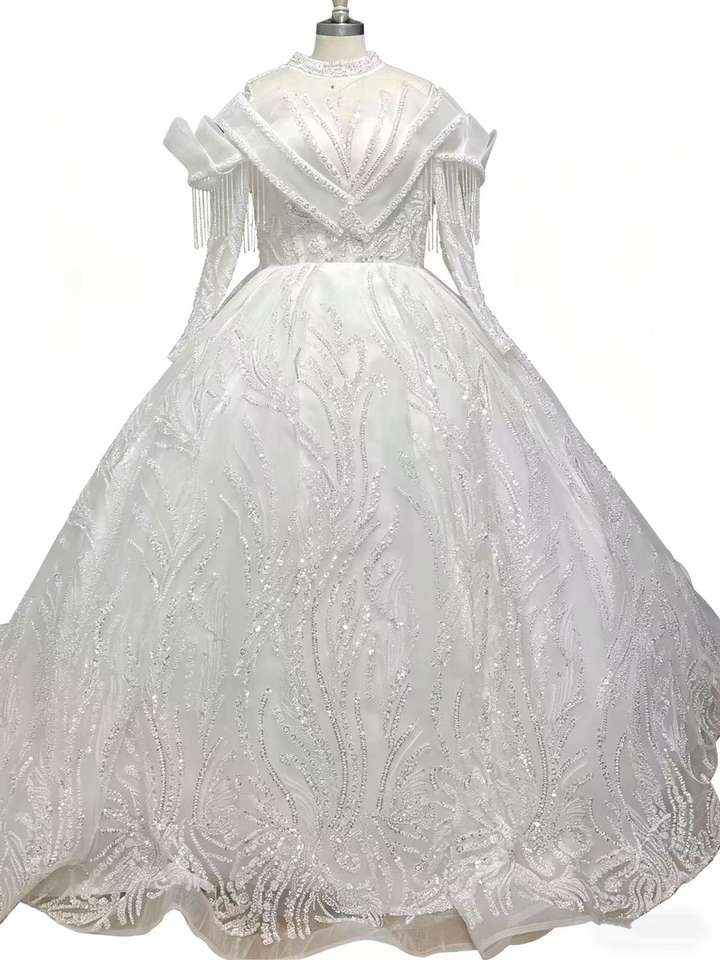 Abito da Sposa Lungo con Frange Stile 2026 - Elegante Abito Formale di Lusso con Strass e Strascico a Coda di Rondine