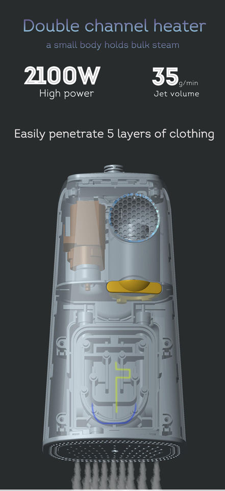 Potenza di aspirazione 5000Pa: La potenza di aspirazione di 5000Pa consente un vapore semplice con una mano, anche nelle zone difficili da raggiungere come orli e cuciture, garantendo un'eliminazione efficiente ed efficace delle pieghe.