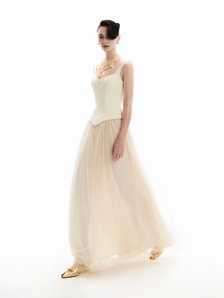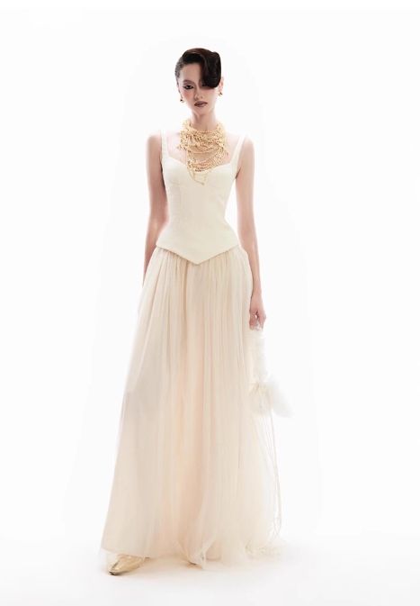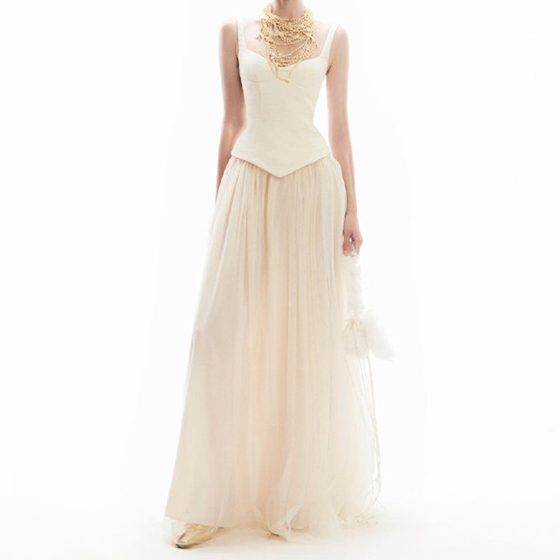 2026 New Year Woman's Fashion Slim Fit High Waist A-Line Diamond Empire Waistline Mesh Fabric Evening Floor-Length for Parties