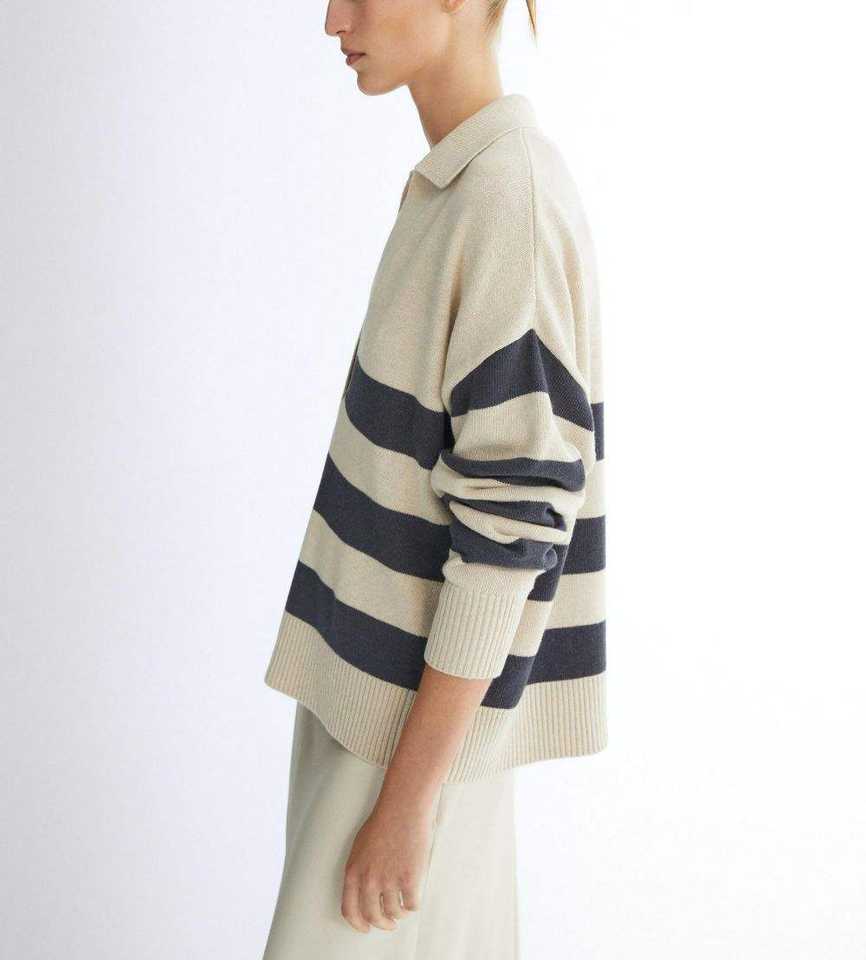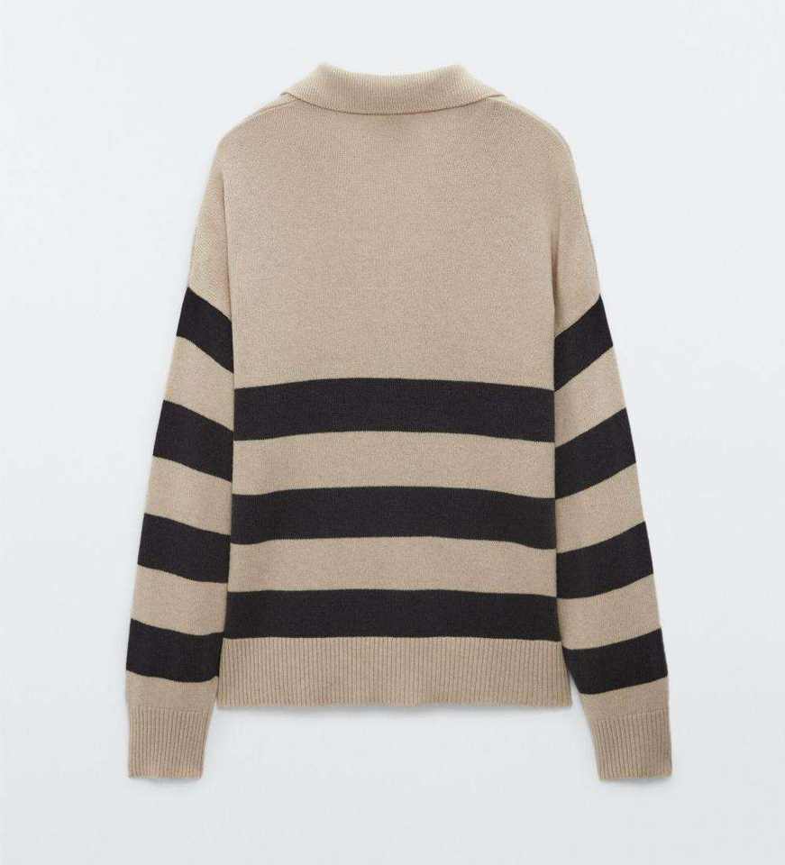Maglione Polo a Righe con Scollo a V per Donna, 100% Cotone, Lavorazione a Maglia, Stile Oversize, Autunno-Inverno 2026, Produzione OEM ODM Personalizzata