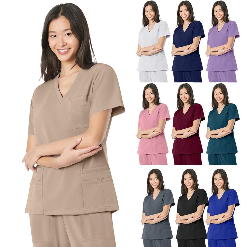 Divisa Ospedaliera Personalizzabile 2026 con Logo, Tessuto Elasticizzato 4 Vie, Scollo a V, Top e Pantaloni Jogger per Infermieri e Medici