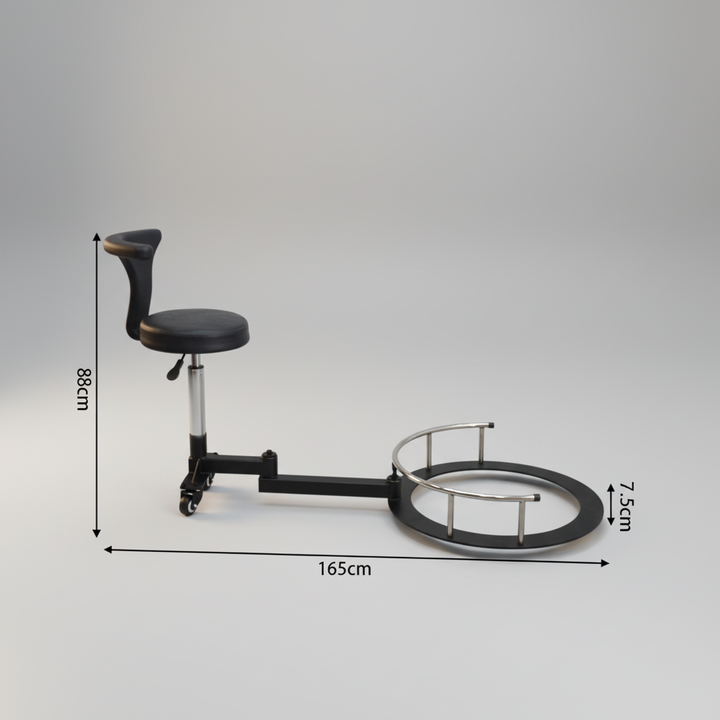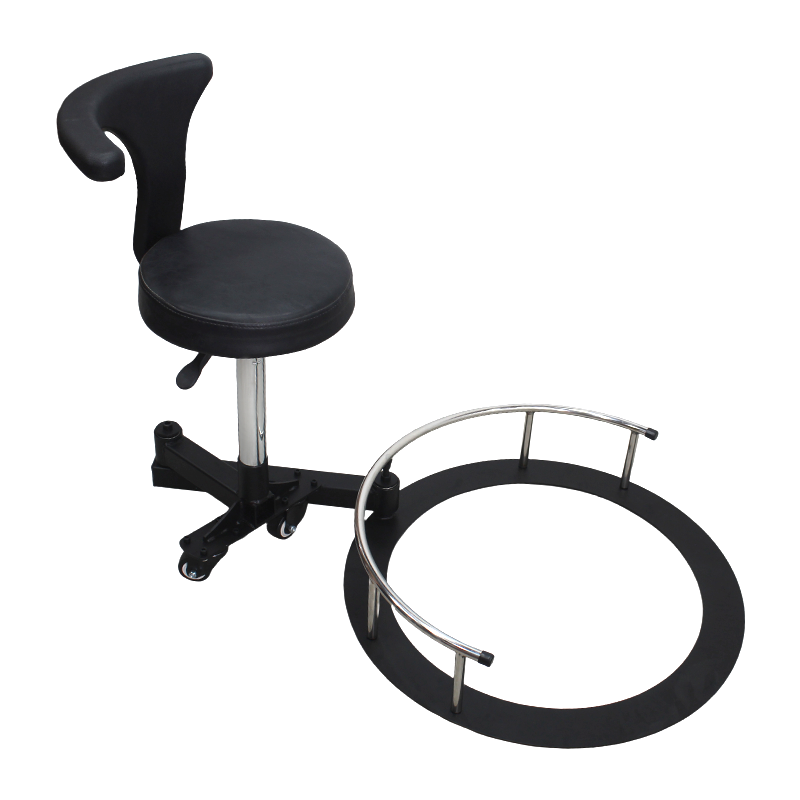 Rotazione a 360 gradi: Consente alla sedia di ruotare liberamente, migliorando flessibilità e facilità di movimento durante l'acconciatura.