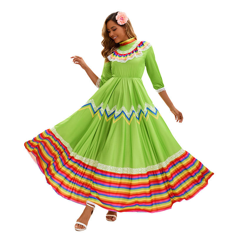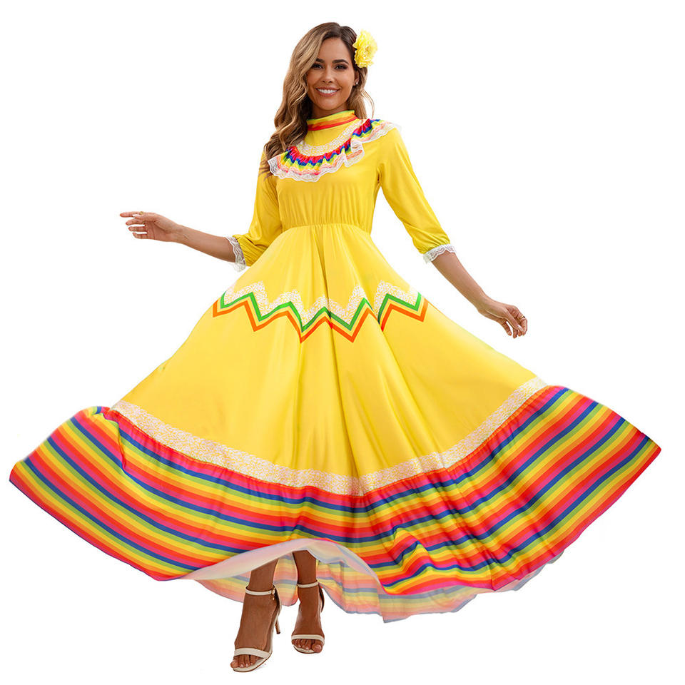 Abito Medievale Retrò da Donna RUIKE 2026, Vestito Etnico Messicano in Stile Spagnolo con Gonna Ampia, Costume per Spettacoli Teatrali
