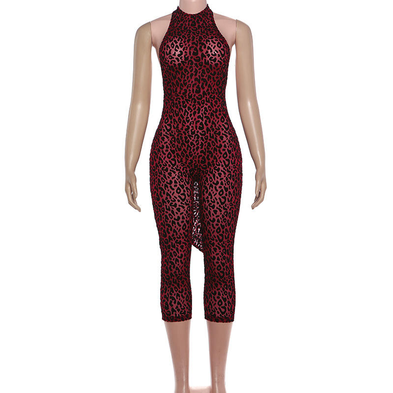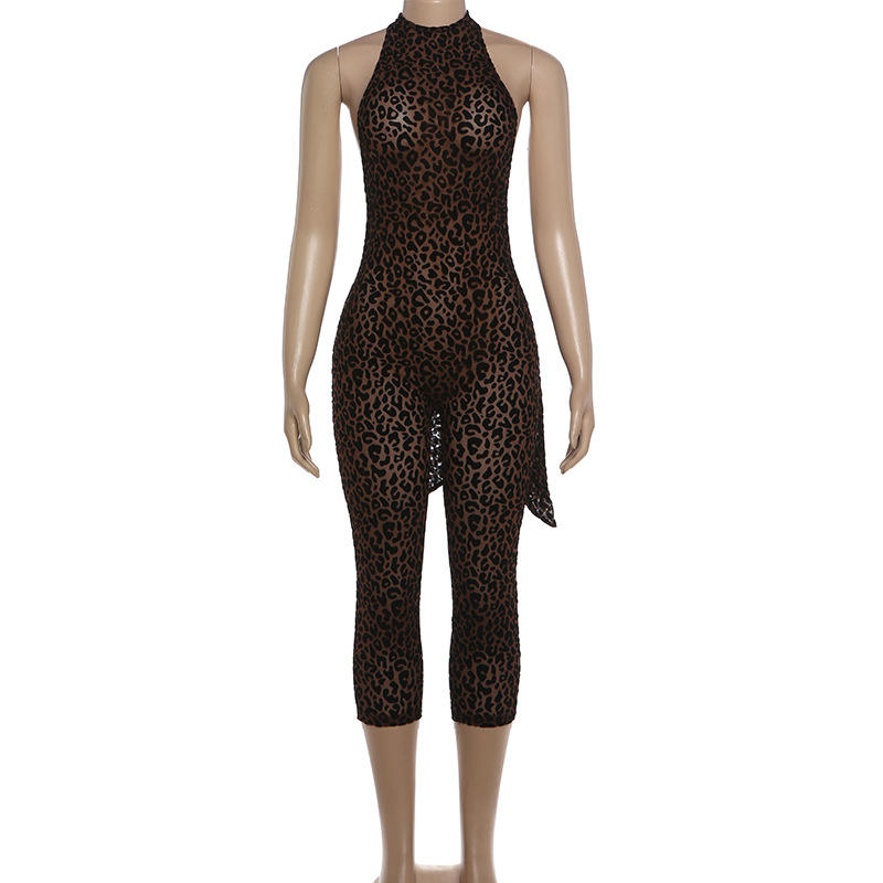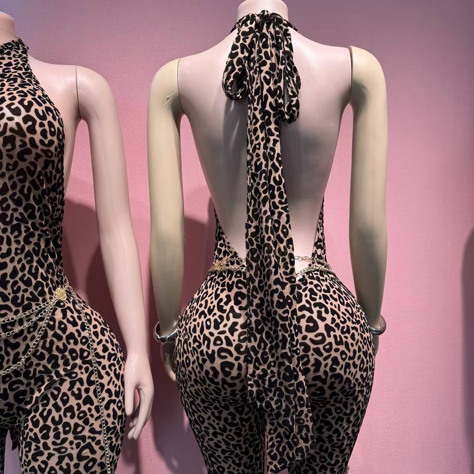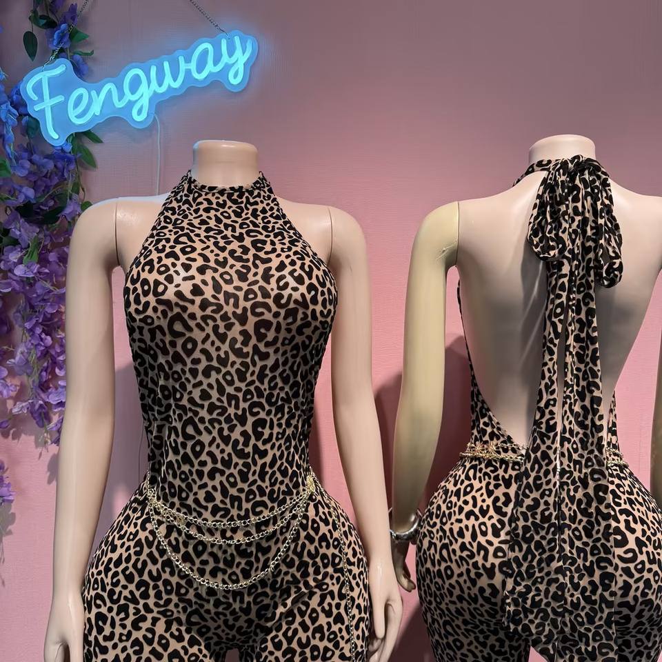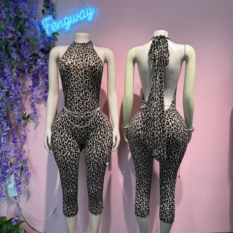 Tuta intera sexy da donna senza schienale con stampa leopardata, senza maniche, per l'estate 2026, tuta attillata da club, di tendenza