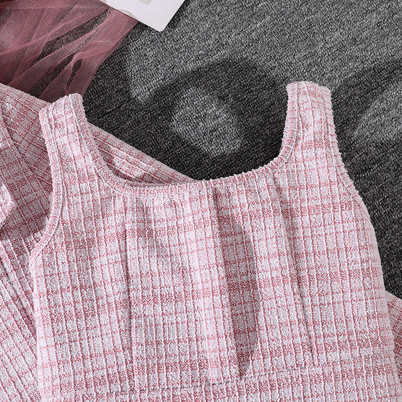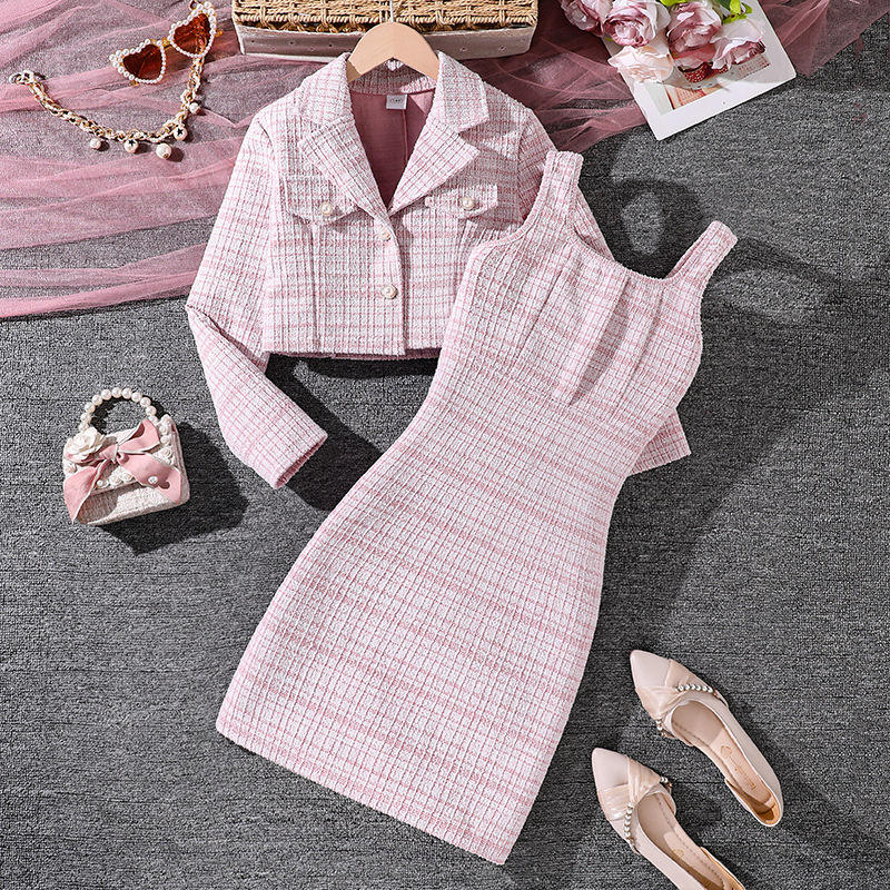 Completo Primaverile e Autunnale 2026 per Ragazze 8-12 Anni, Set Due Pezzi con Blazer Corto a Quadri e Abito Aderente Senza Maniche, Abbigliamento per Adolescenti