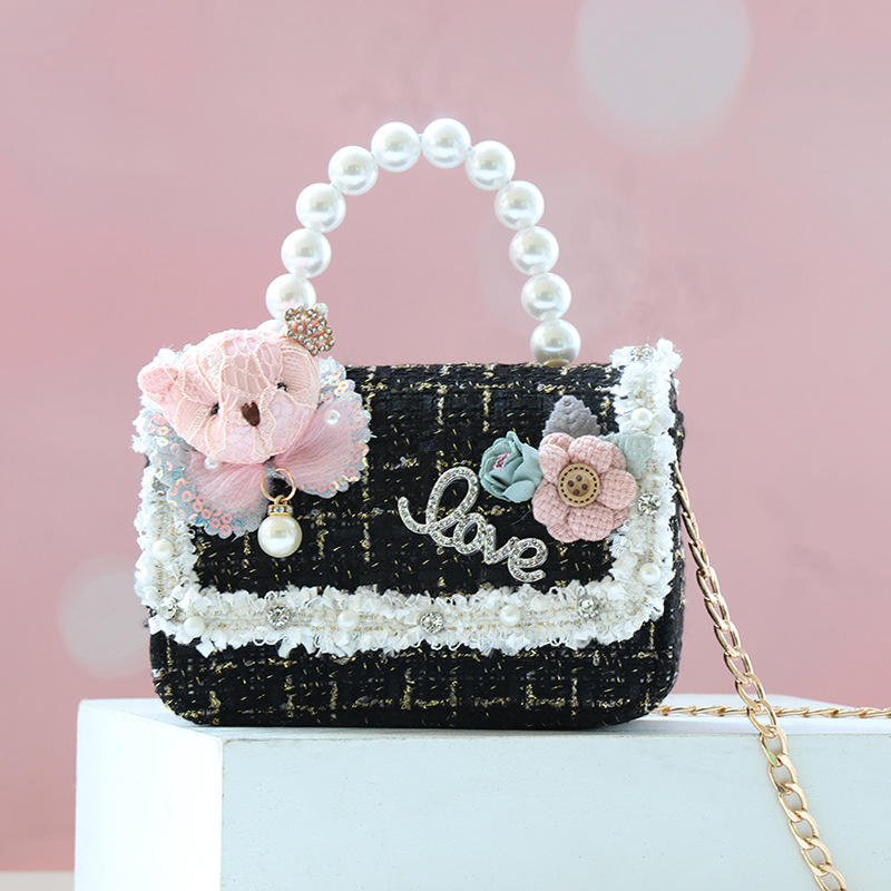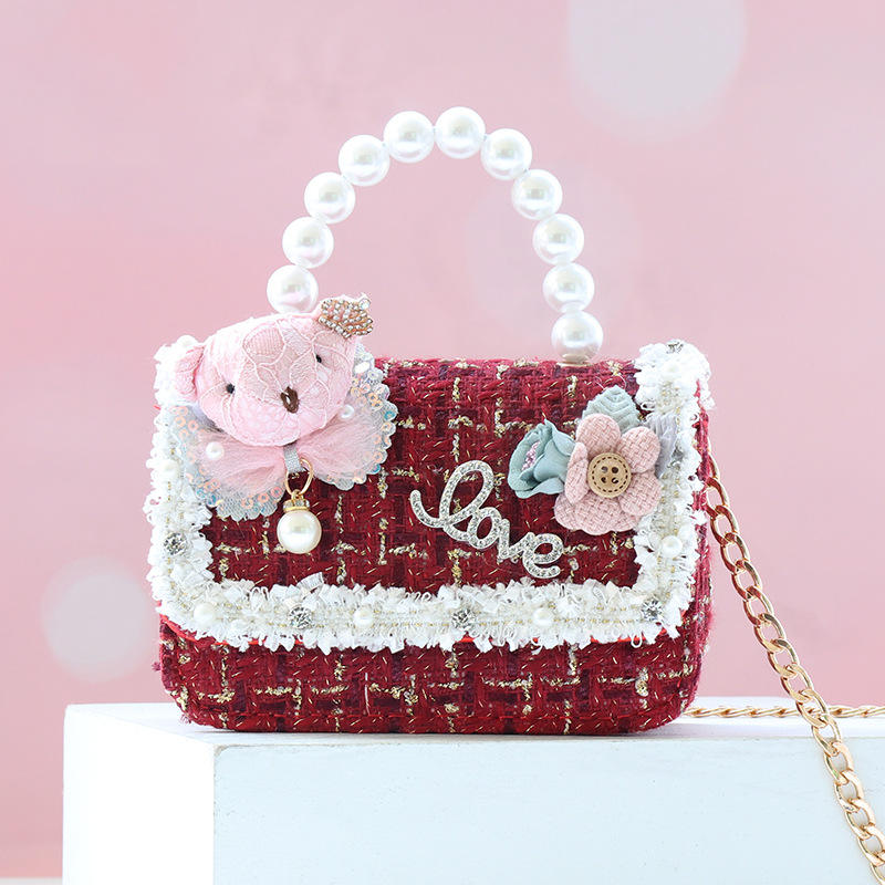 Borsa a Tracolla Primaverile 2026 con Orsetto e Perle per Ragazze, Trendy Borsa Principessa con Elementi Cartoon