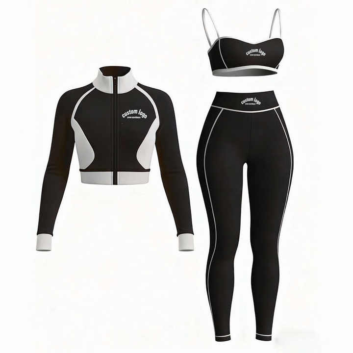 Set Sportivo 3 Pezzi Primavera-Autunno 2026 con Logo Personalizzato, Stile Y2K, Giacca con Colletto Alto e Zip, Reggiseno e Leggings