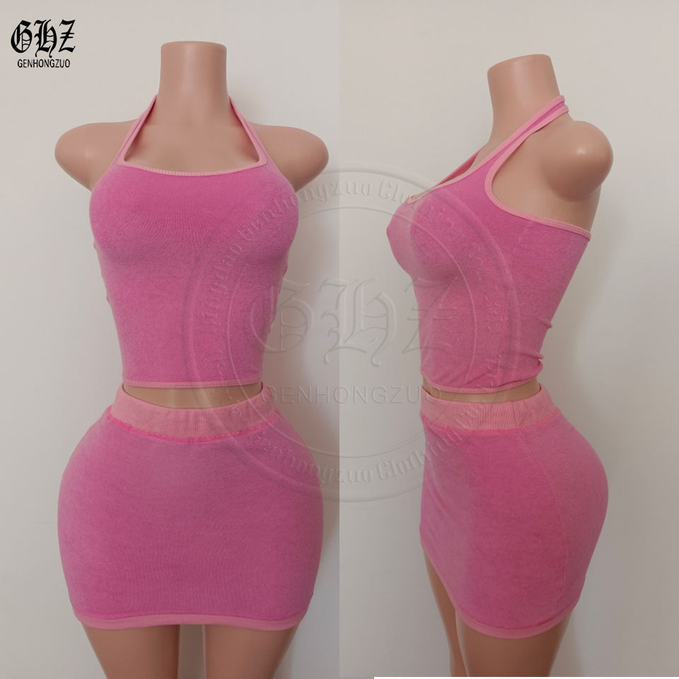 Nuovo Abito Mini Bodycon Rosa Baby con Spalline Halter Personalizzato Collezione Primavera 2026, Scollo Quadrato Senza Maniche