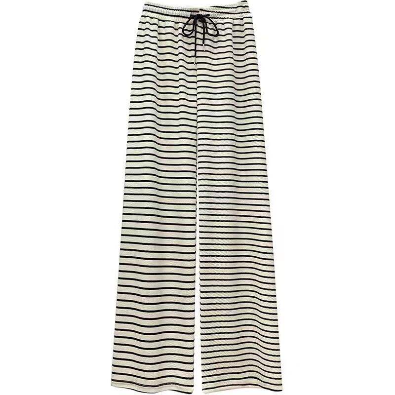 Pantaloni Lunghi da Donna Primavera Estate 2026, Nuovi, Slim Fit, Gamba Larga, Vita Alta, a Righe Bianche e Nere, Stile Vintage Casual 145