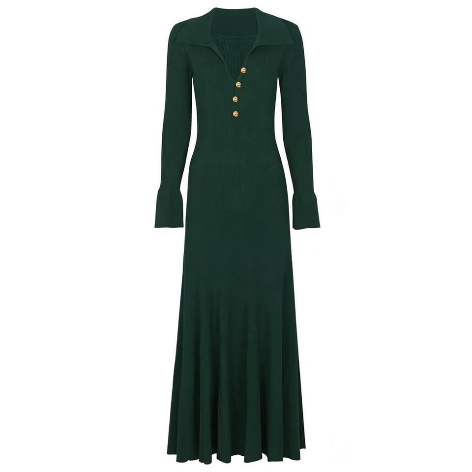Gonna Lunga Donna Stile Vintage Primavera Estate 2026 con Maniche a Campana in Maglia, Vestibilità Slim e Vita Impero, Eco-Friendly