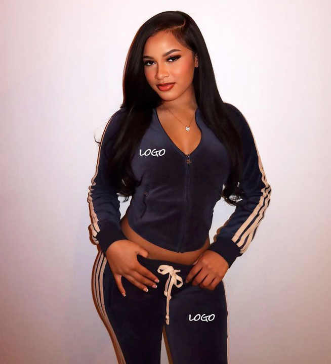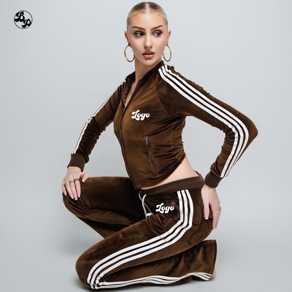 Completo Set 2 Pezzi Donna Primavera 2026: Giacca con Cerniera e Pantaloni Svasati in Velluto con Striscia Laterale Personalizzabile con LOGO